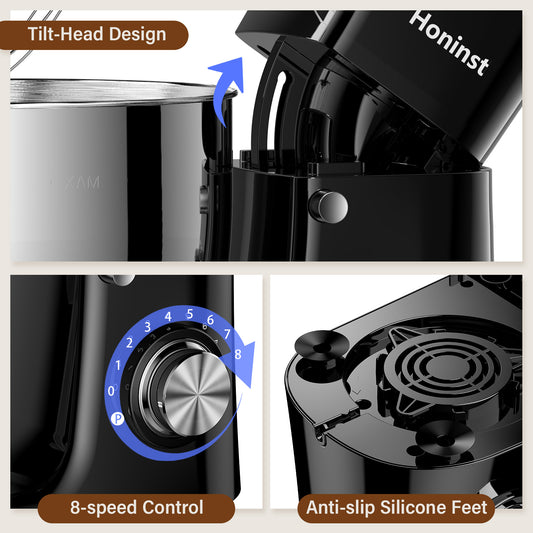 Honinst 5.5 QT Stand Mixer, Lightweight 8+P Speeds with Tilt-Head Electric Mixer, Kitchen Mixer with Dough Hook, Whisk, Beater, Bowl for Baking, Cake and Most Home Cooks