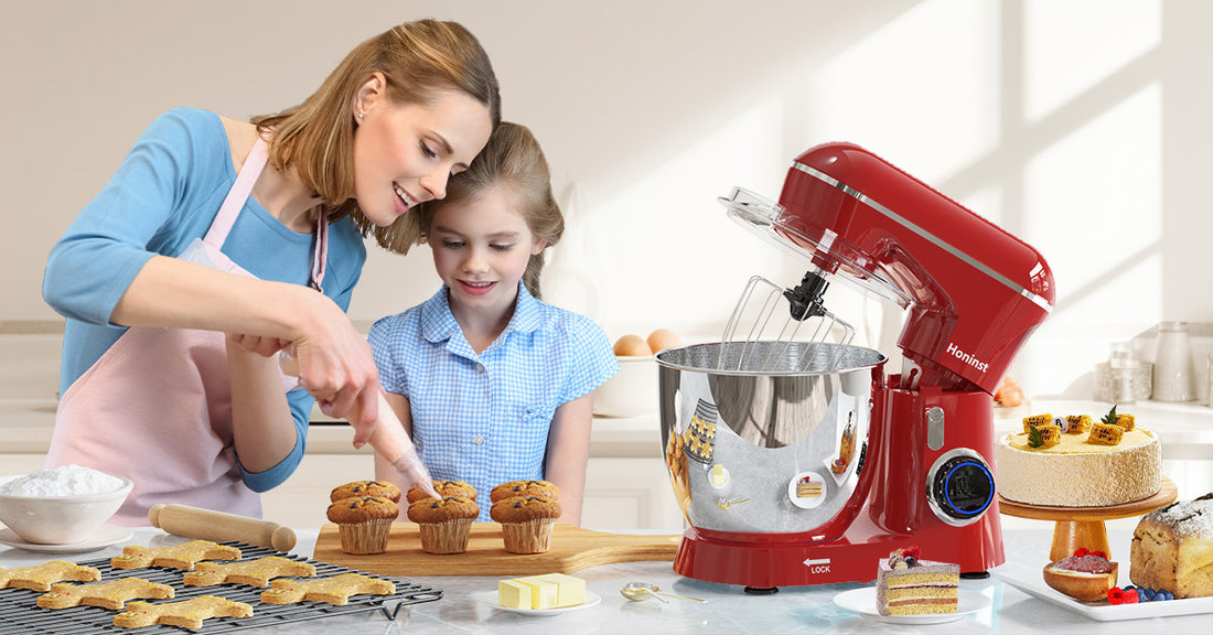 Honinst 6 QT Stand Mixer, Lightweight 8+P Speeds with Tilt-Head Electric Mixer, Kitchen Mixer with Dough Hook, Whisk, Beater, Bowl for Baking, Cake and Most Home Cooks